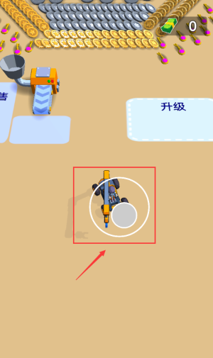 2、点击红框工程车,控制钻杆收集地面金币资源。