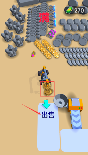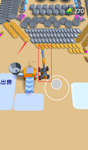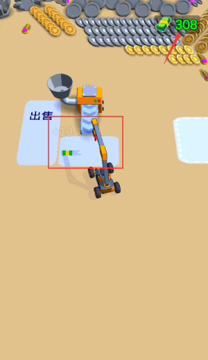 3、用红框铲斗收集金币,通过传送带运往出售平台。