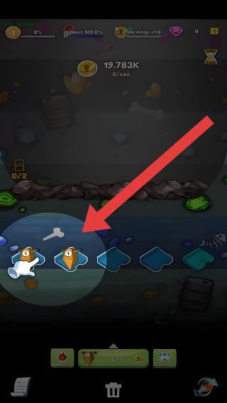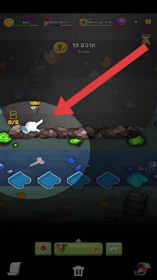 1、根据提示在界面中拖拽两个相同的钻头,将它们合成更高级的钻头,提升挖掘工具的能力。