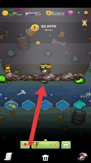 3、持续用钻头挖掘岩石,收集金币与资源,积累到一定程度,金币收益会逐步提升。
