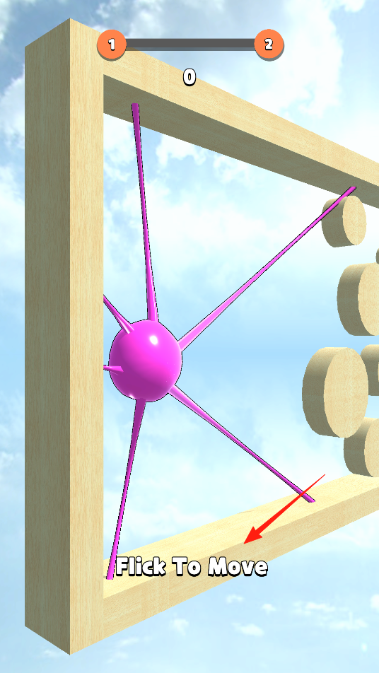 1、在软泥跳跃初始界面,根据Flick To Move提示,滑动屏幕,让粉色带刺球体移动,通过滑动操作,使球体在框架内滚动,尝试通过障碍,体验flick移动机制。