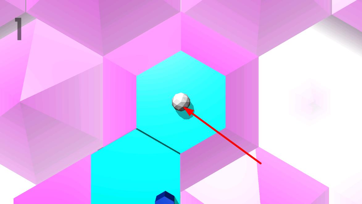 2、方块收集与障碍躲避:滚动过程中收集黄色小方块,同时避开周边障碍物,注意六边形的消失与出现,及时移动小球避免停留,提升生存时间。