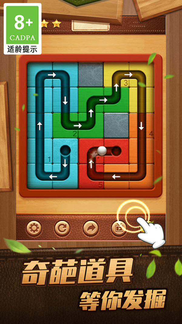 1.拖动木块拼接:玩家需拖动并摆放轨迹木块,形成一条完整通路,保证弹珠能够顺利到达终点完成每一个任务挑战并获得奖励。