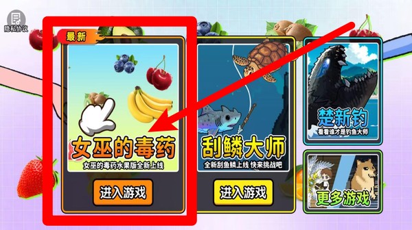 1.进入游戏界面后,玩家可以看到女巫的毒药以及丰富的水果元素,点击“进入游戏”即可开启紧张刺激的解谜挑战。