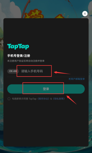 3、点击红框TapTap登录按钮,选择账号登录方式。