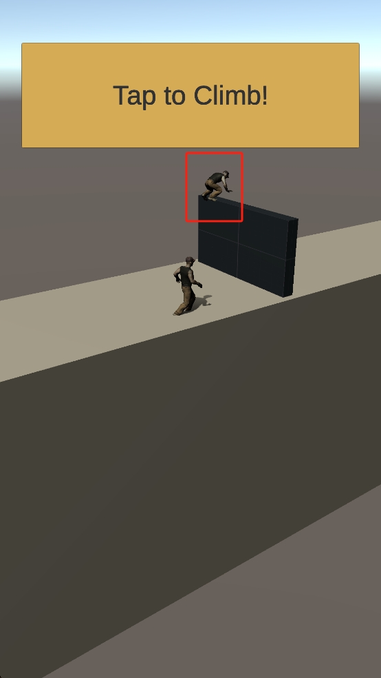 1、在初始场景中选定红色方框内的角色,该角色将作为操控对象,开启后续的攀爬挑战环节,为跨越障碍做好准备。