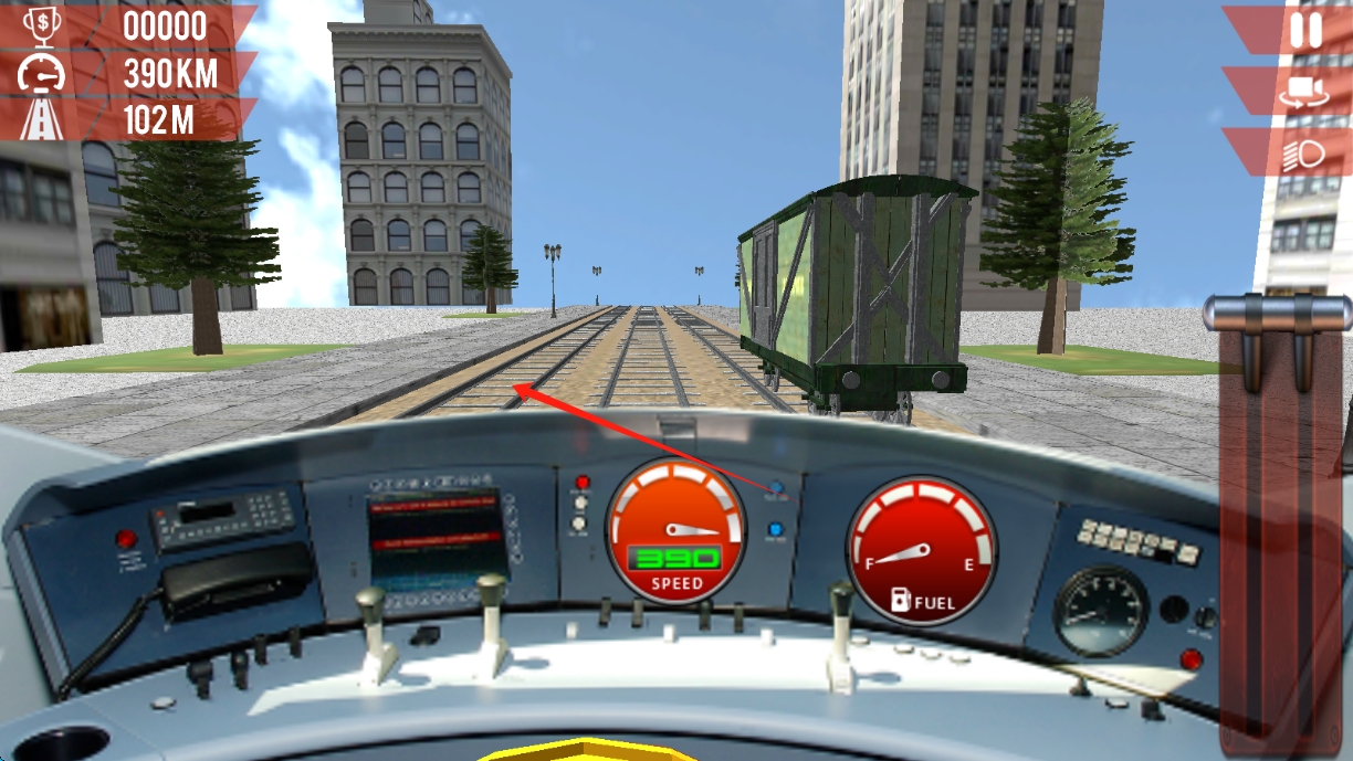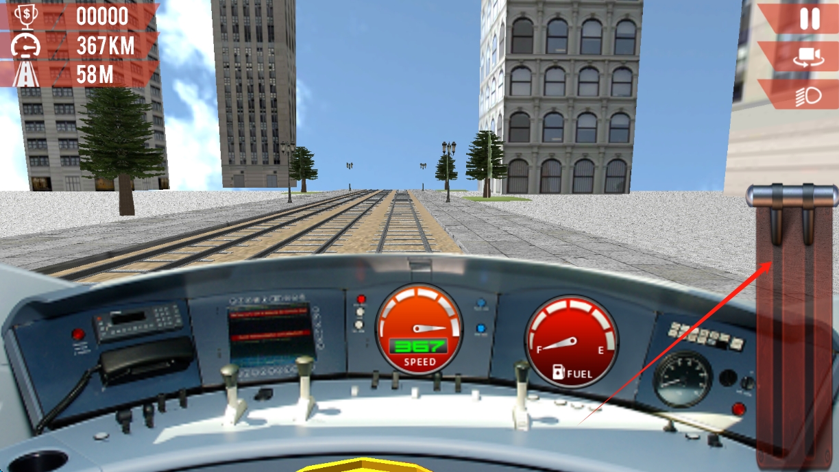 1、火车驾驶操控:学习并掌握火车的启动、加速、减速、停靠等操作,适应其独特的驾驶手感,在城市的轨道上平稳的行驶。
