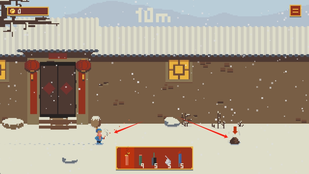 2、然后我们选择下方道具栏的物品,对目标区域使用,清理障碍或完成任务,获取金币,提升行进距离。