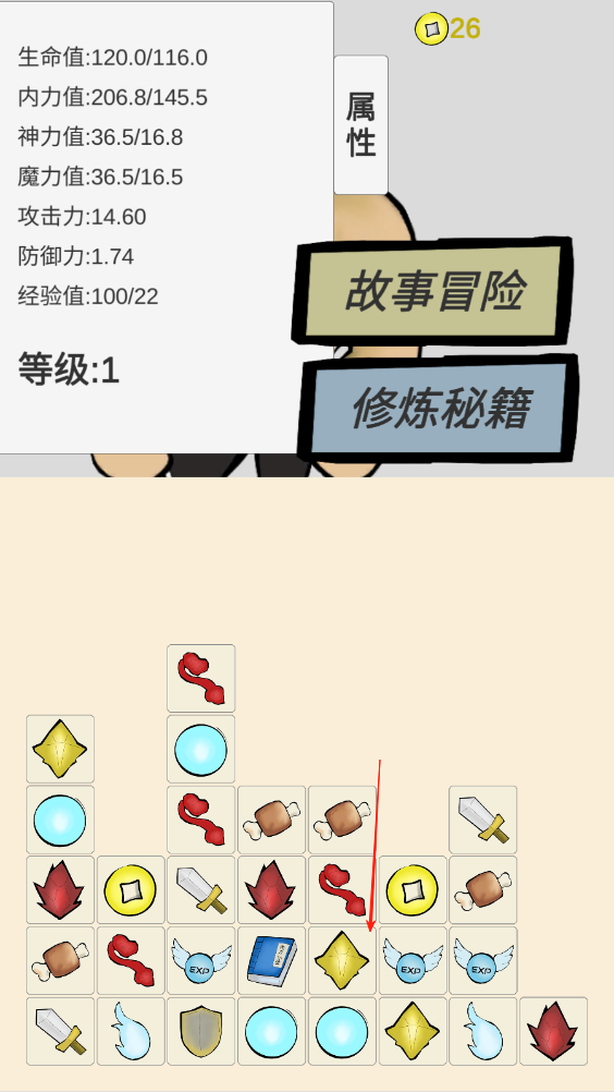 1、根据修炼秘籍消除,获得技能,增加等级,可以时时刻刻注意属性表,根据属性变化消除。