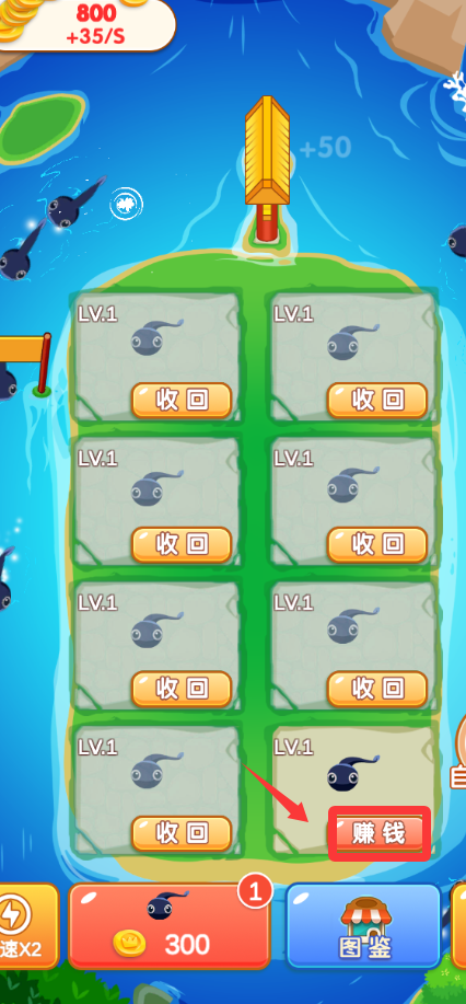 3、放满那些小蝌蚪,每转一圈就会有金币的。