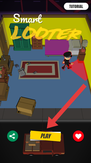 1、界面上有TUTORIAL教程按钮,点击PLAY开始游戏按钮方可进入,画面呈现初始场景,有角色、房间内家具等元素。