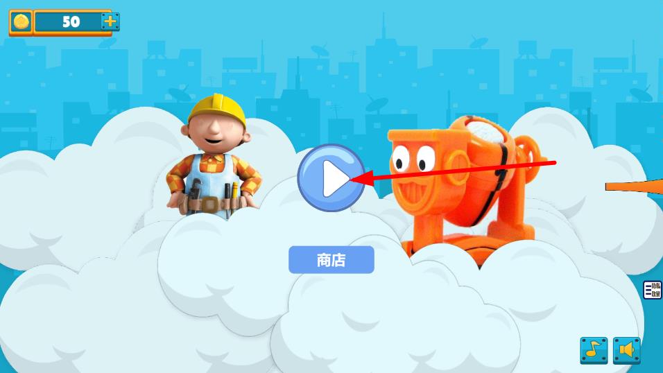 1、在游戏主界面,点击蓝色播放按钮,进入关卡,操控角色与工程车互动。