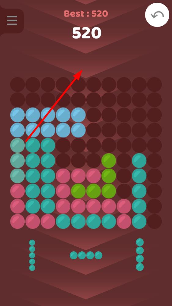 2、用手指挪动不同形状的小球到合适位置,尽量让同色小球横竖连成一行或一列,实现消除,必要时可撤销操作调整策略。
