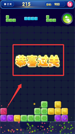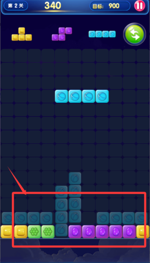 2、注意屏幕下方的积分目标,合理安排方块布局,避免出现空隙影响后续操作。操作失误过多会导致游戏结束,需要重新开始当前关卡。