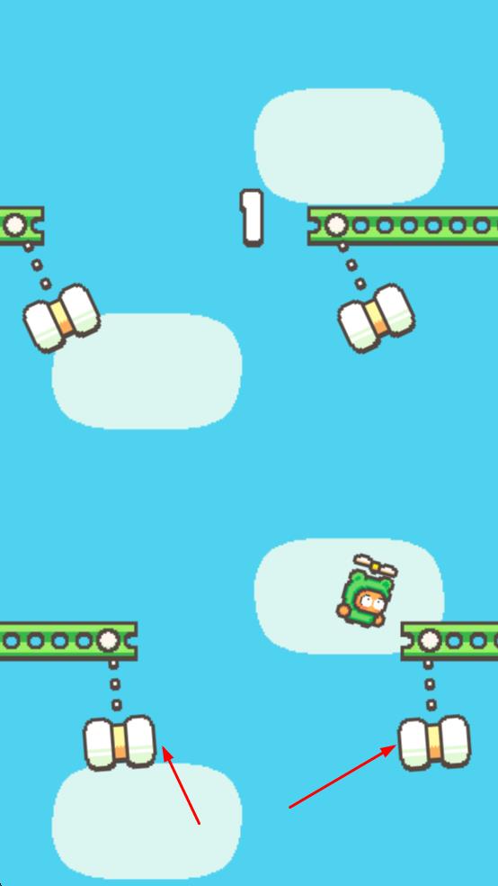 3、竖屏上升全新视角:与flappybird的横屏向前飞不同,改为竖屏向上冲的视角,搭配左右摇晃的障碍锤,形成独特的空间布局,带来新鲜感与新的挑战维度。