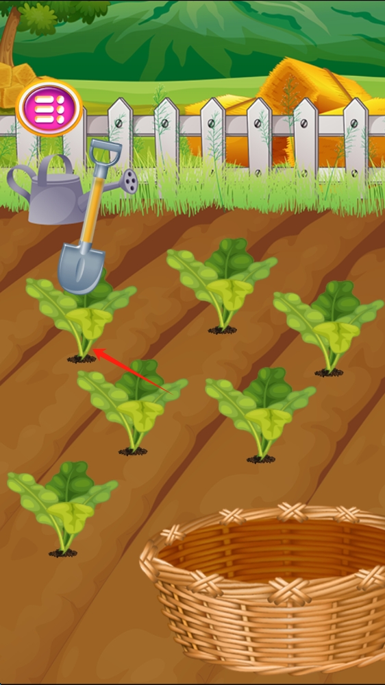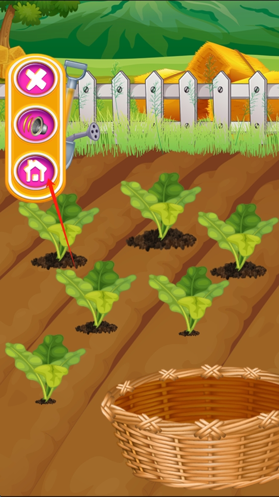 3、在后续农场种植场景中,继续根据箭头提示,进行作物管理,收获成熟作物,点击回到主页。