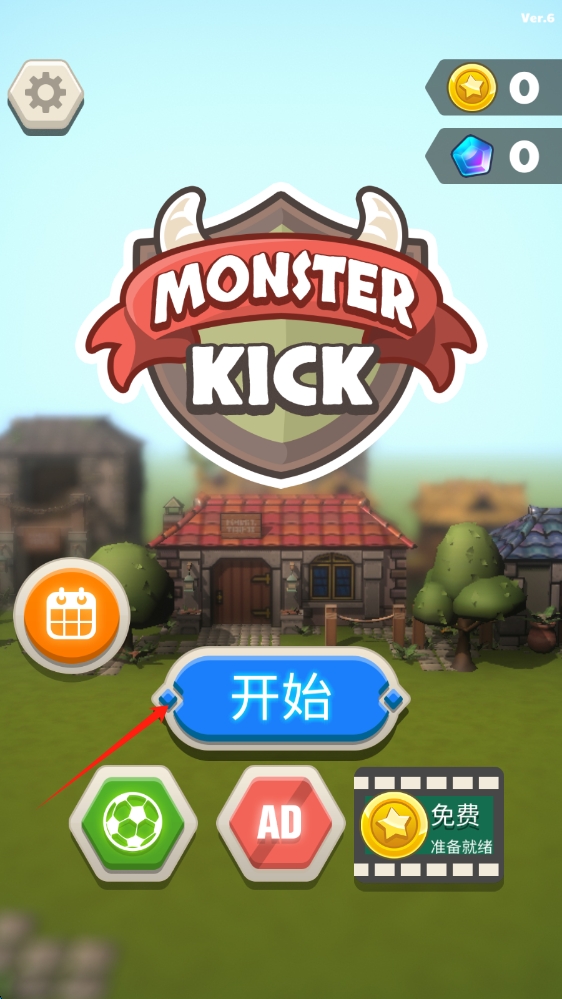 1、在Monster-Kick游戏启动界面,点击开始,开启怪物踢球冒险,进入游戏世界,点击开始游戏。