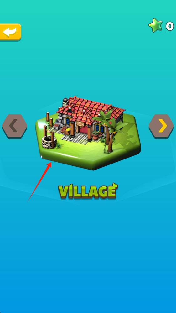 2、进入场景选择界面,跟随箭头提示,选择VILLAGE场景,确定游戏场景,点击选择关卡。