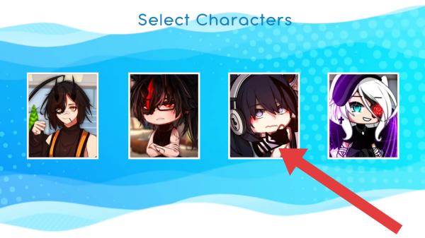 2、上方文字SelectCharacters意为选择角色,界面展示了4个风格各异的卡通角色形象,是加查风格的角色选择环节。