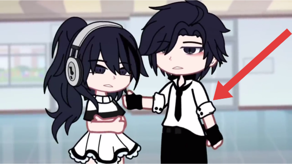 3、展示了两个卡通人物形象,女生戴着耳机,穿着黑白配色裙子;男生穿着白衬衫黑领带,右手戴着黑色袖套。