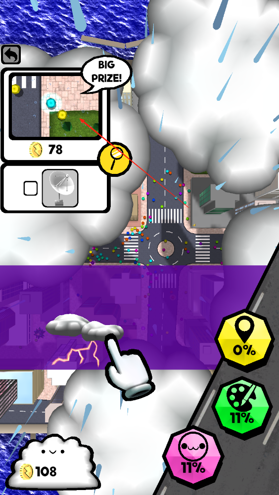 2、雨滴下落方过程中会出现金币,是除了通关之外另外的奖励,点击之后即可收取,没有收取到也没有关系。