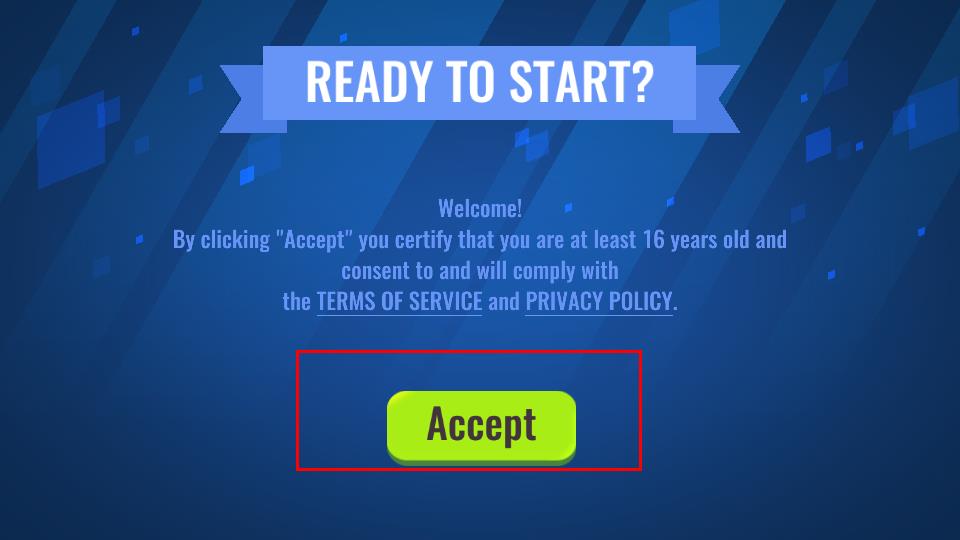 1、点击Accept按钮,确认年满16岁并同意服务条款与隐私政策,开启游戏,进入奇妙冒险流程。
