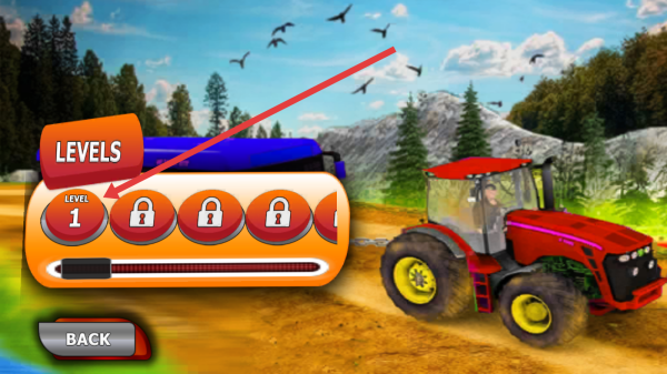 2、选择点击Level-1关卡后,该关卡为初始可玩关卡,准备进入乡村场景开始拖拉机驾驶挑战。