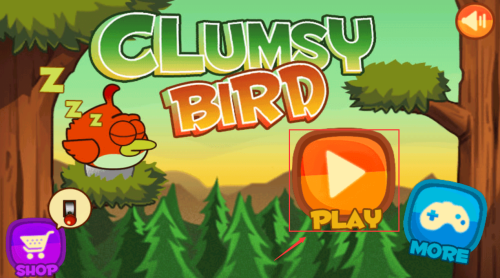 2、点击橙色PLAY按钮,进入笨拙小鸟游戏主关卡。