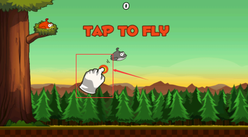 4、按住红框TAP TO FLY,控制小鸟飞行避开障碍。