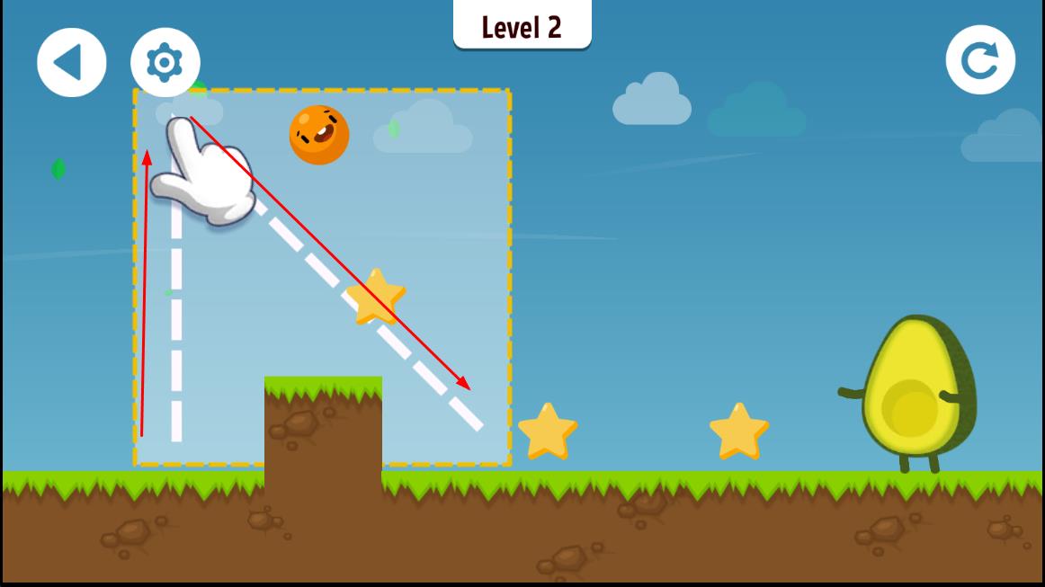1、进入游戏后选择关卡,观察场景中鳄梨的起始位置与目标点,以及中间的障碍分布,准备绘制第一条引导道路。