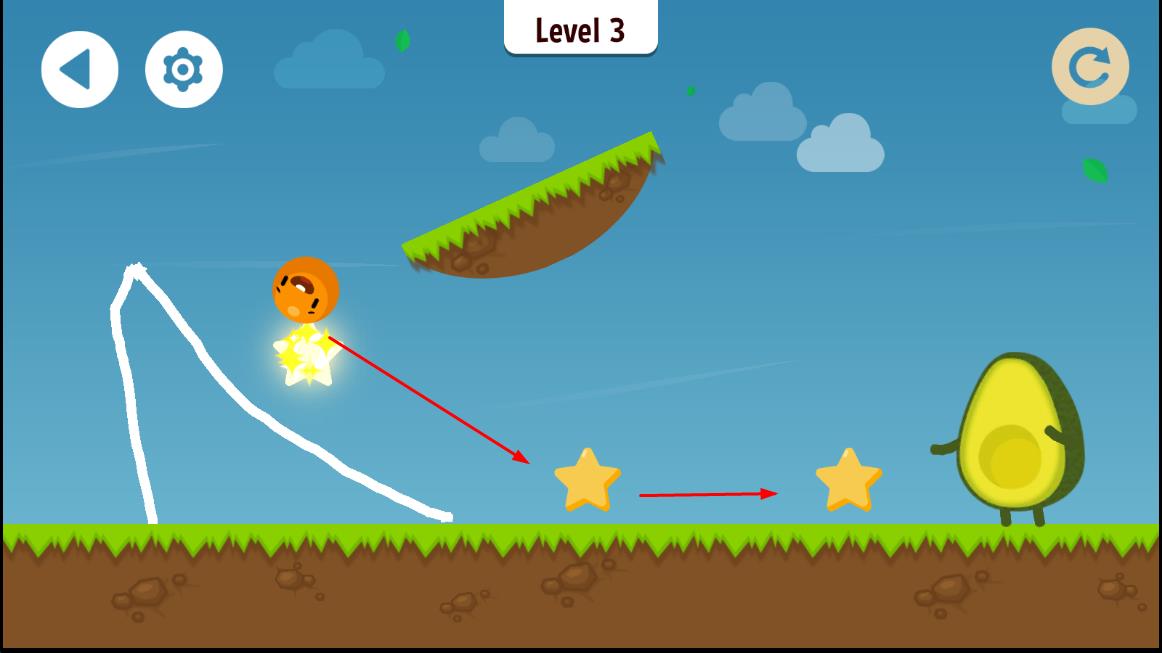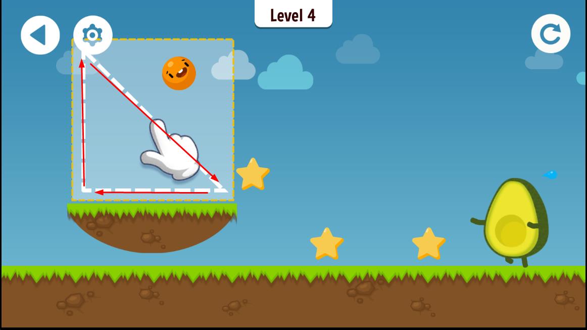 3、点击开始按钮让鳄梨沿绘制的道路滑动,若成功到达目标点则通关,解锁新关卡与更复杂的场景布局。