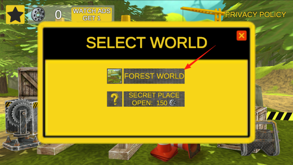 2、进入世界选择界面,点击FOREST WORLD,进入森林主题世界,利用该操作,加载森林场景,在其中开展工程任务,感受不同场景机制。