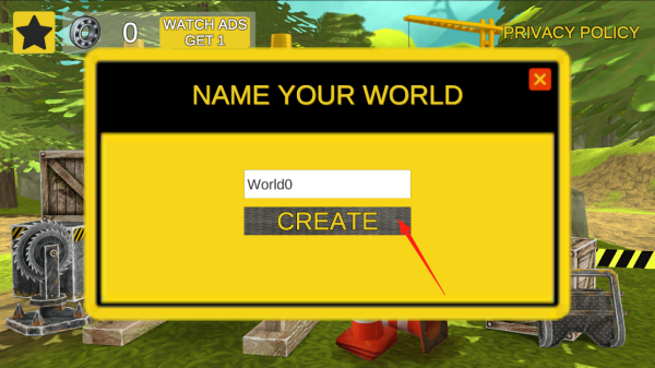 3、进入命名界面,输入世界名称,点击CREATE,创建专属世界,通过命名与创建,定制个人游戏空间,在自建世界中进行工程挑战,体验创造机制。