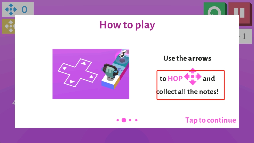 1、首先阅读教程,明确通过方向箭头操控角色跳跃,目标是收集所有音符,然后点击右下角按钮即可开始游玩。
