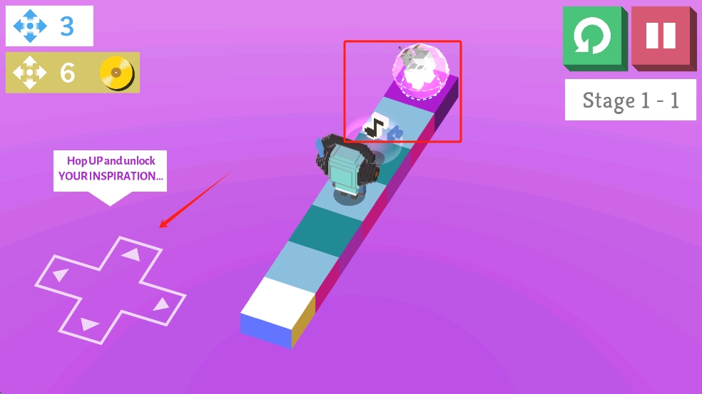 2、运用方向键控制角色沿轨道跳跃,优先拾取音符,注意上方紫色光球奖励,积累收集数量推进关卡。