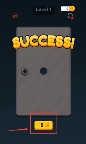 4、点击黄色5金币按钮,领取通关奖励继续游戏。