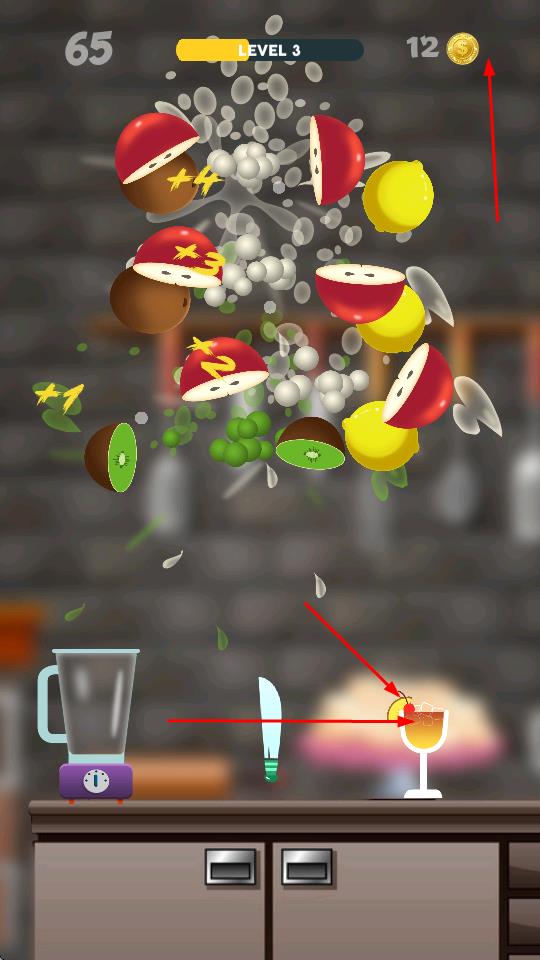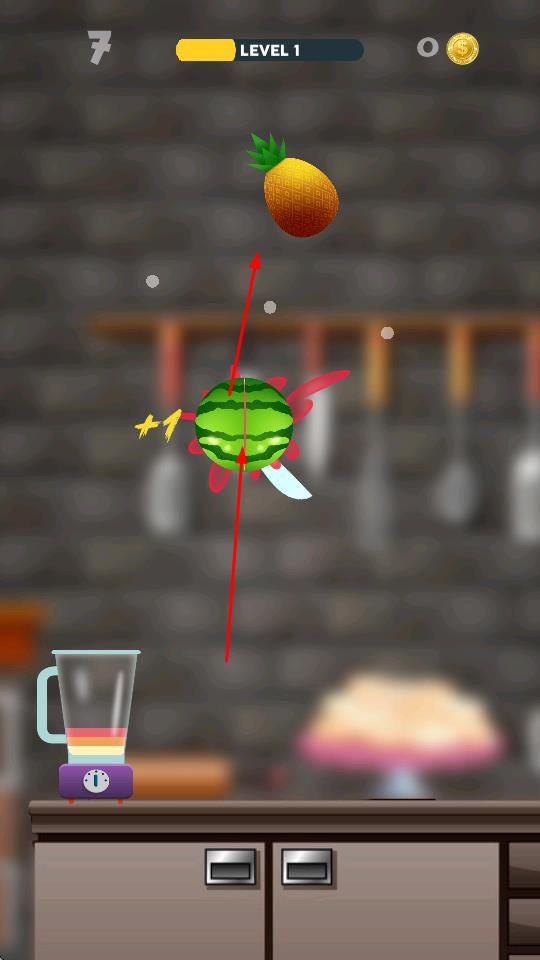 2、用手指滑动屏幕模拟切割动作,精准切割不同水果,如西瓜、橙子等,同时留意水果的掉落方向和位置,为收集果汁奠定基础。
