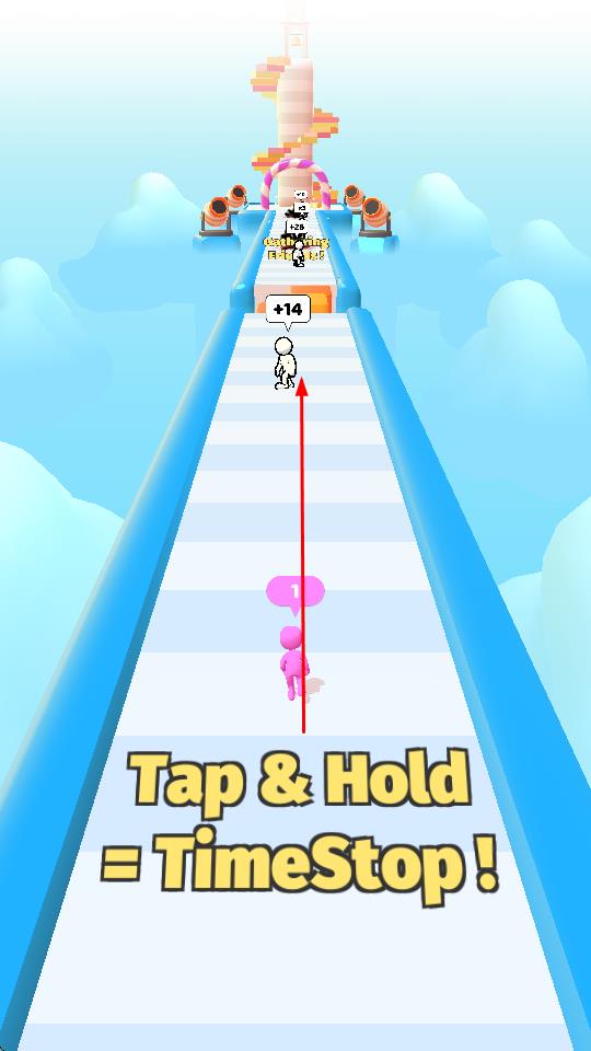 时间停止跑酷是一款画风简约的跑酷作品,玩家在前行途中可召集队友扩大队伍人数,各队伍以不同颜色区分友军与敌军,头顶数字显示人数便于判断强弱,整体玩法轻松解压,在跑酷过程中感受召集队友与应对其他队伍的乐趣。