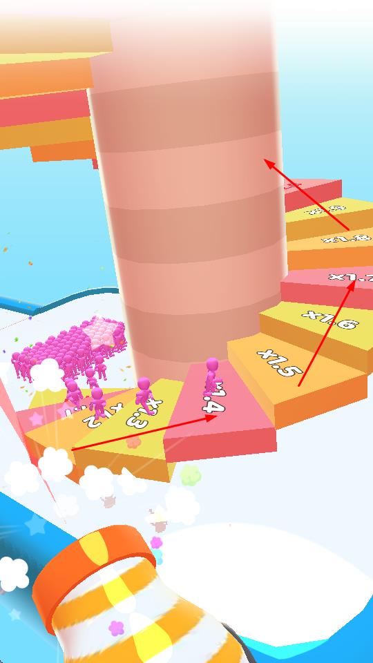 3、利用人数优势对抗:凭借头顶数字判断实力后,在合适时机与敌军对抗,人数多的一方可击败对方并吸纳部分人员,进一步壮大自身队伍,最终以强大阵容完成跑酷挑战。
