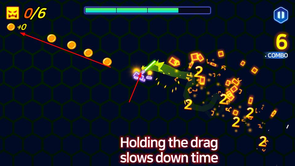 3、注意左上角的敌人数量和金币数量,通过持续攻击敌人完成关卡任务,当拖动屏幕时,时间会变慢,可利用此机制更精准地攻击敌人。