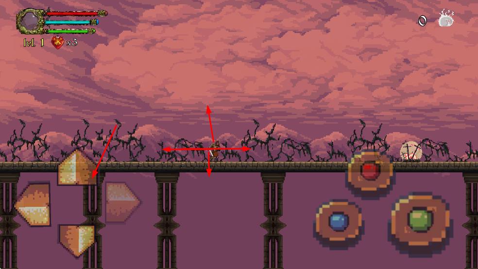 1、看到角色等级和生命值等信息,操控角色在场景中移动,通过左侧虚拟方向键控制移动,这是开启游戏的关键操作,顺利开启游戏之旅。