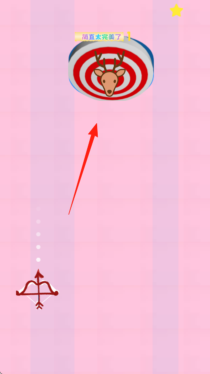 1、进入游戏后,点击弓箭,瞄准上方靶心,沿箭头方向发射,命中靶心获取高分。