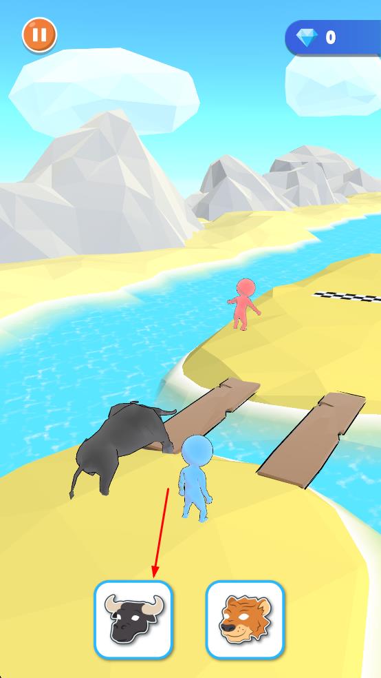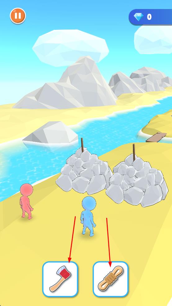 1、操控蓝色小人在场景中移动,根据下方的道具提示,选择合适的道具应对不同场景,这是开启游戏的关键操作,顺利开启游戏之旅。