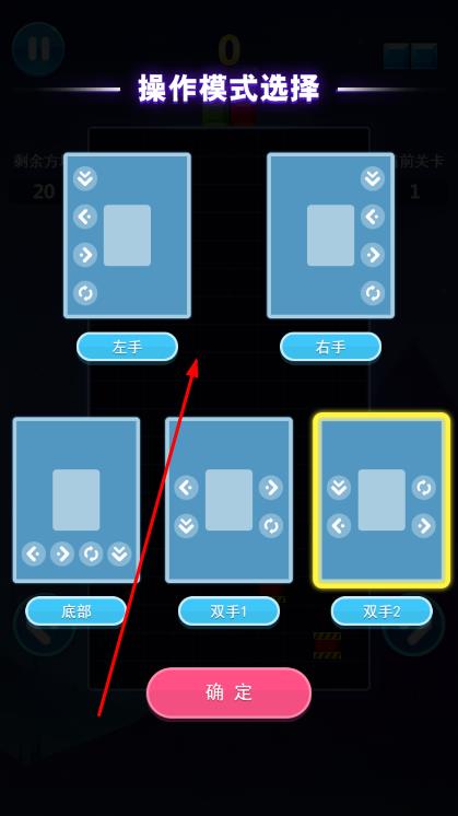1、进入游戏,在操作模式选择界面,选择适合自己的操作模式,点击确定按钮进入关卡。