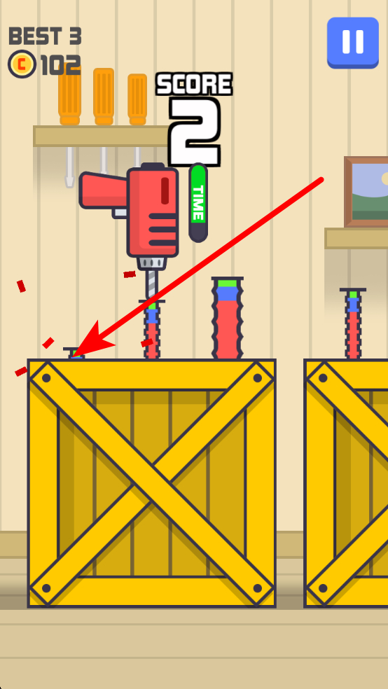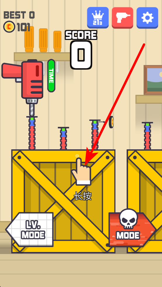 1、熟悉操作方式:进入关卡后,仔细观察箱子上的钉子具体位置,点击长按屏幕控制钻头启动,松开手指则停止运作,通练习掌握按压力度与时间关系。