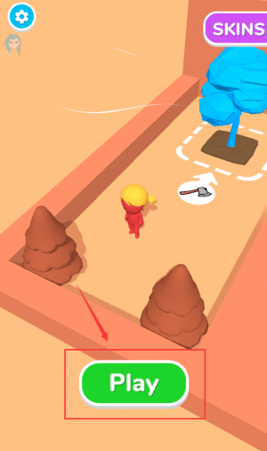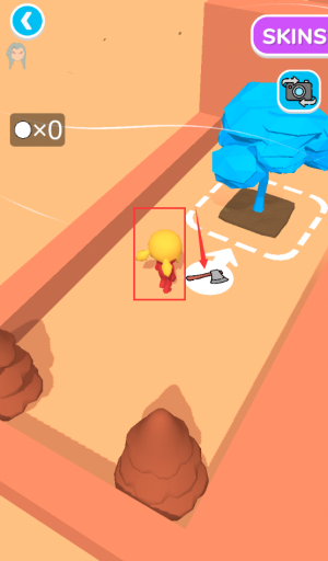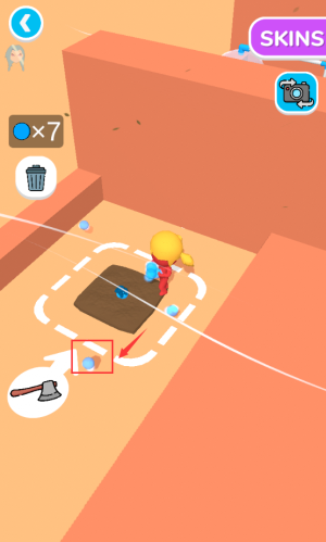 2、控制红框红色角色,拾取斧头砍伐蓝色树木。