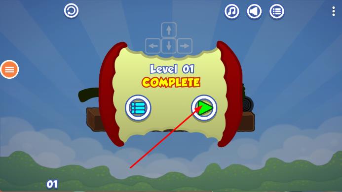 2、在关卡场景中,通过屏幕下方虚拟方向键,控制贪吃蛇移动,规划路线,避开障碍,向目标前进,尝试吃到苹果完成任务。