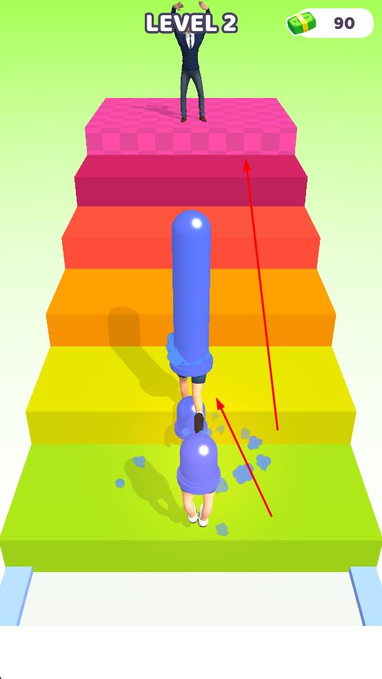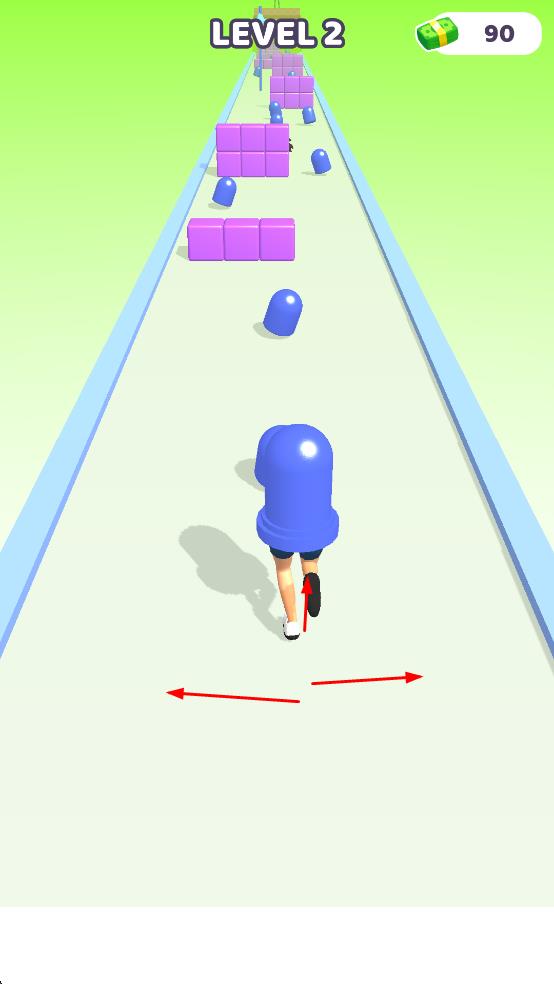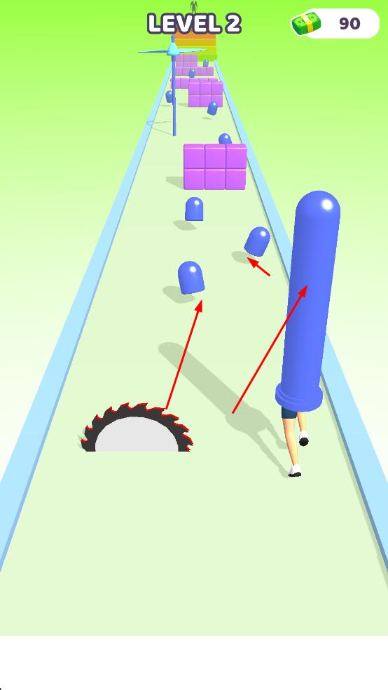 2、收集的蓝色道具会使角色的蓝色部分变长,同时注意躲避障碍物,为顺利通过关卡奠定基础。