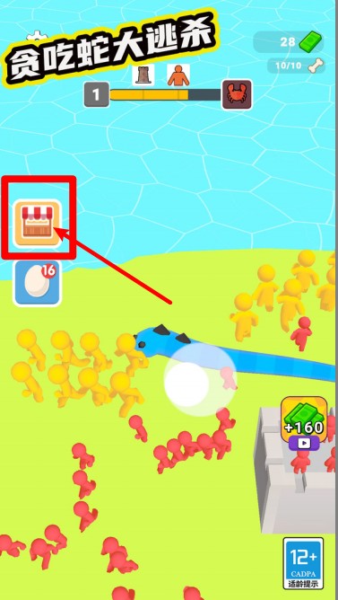 1.点击屏幕左侧的商店图标,可进入游戏商店兑换宝箱与道具,帮助贪吃蛇提升生存和战斗力。
