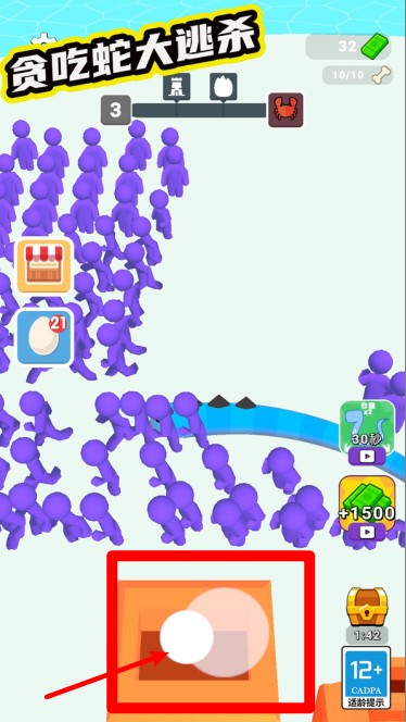 3.屏幕下方的虚拟摇杆用于控制贪吃蛇的移动方向,灵活操控可避开敌人并快速吞噬目标。